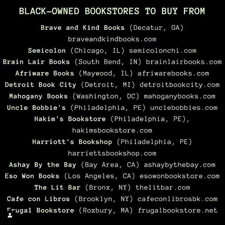 Now go forth and Pre-order (or in the case of the ones out, order) these books! Support these amazing authors! And while you are at it, support the Black Owned Bookstores in the graphic below (which I borrowed from Angie Thomas’ Instagram)!